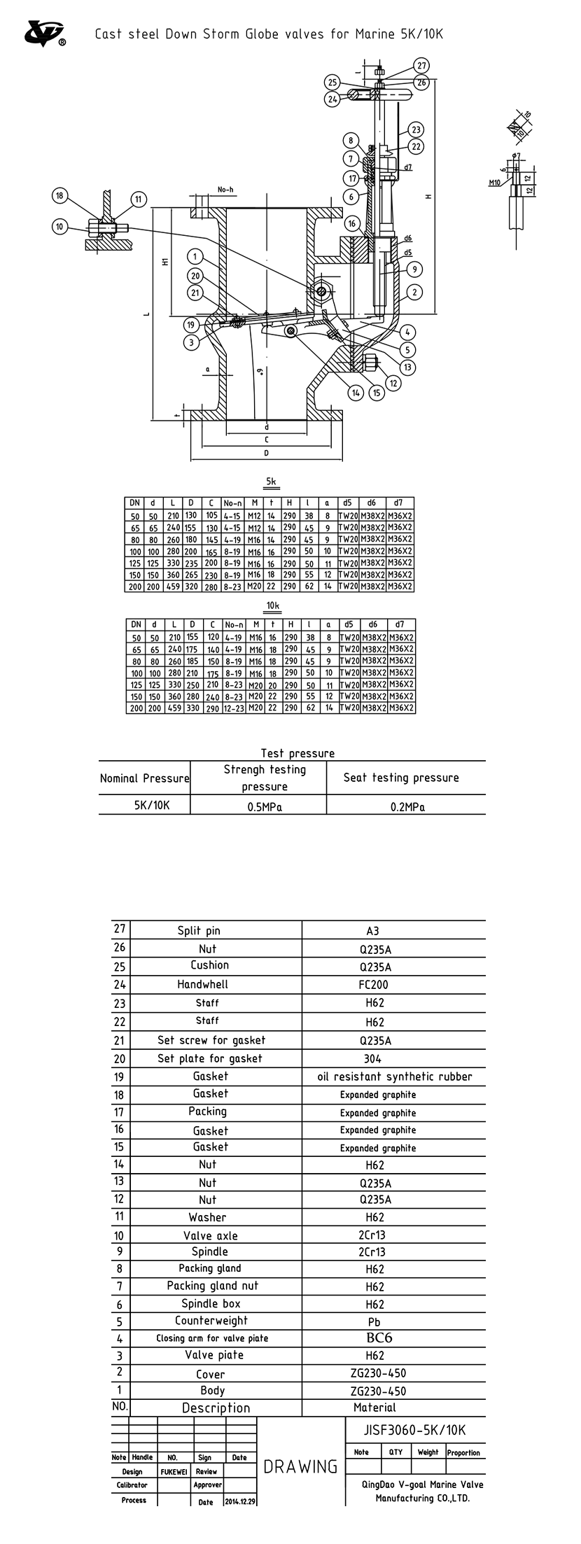 殼體測試壓力: 0.5MPa 密封測試壓力: 0.2MPa