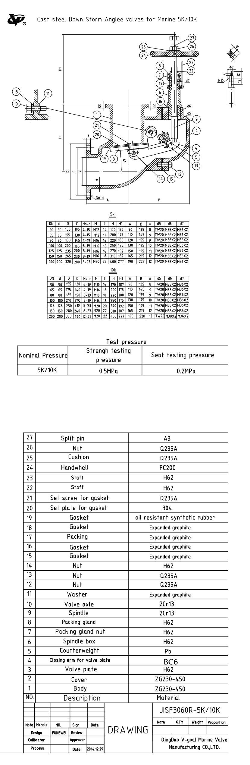 殼體測(cè)試壓力: 0.5MPa 密封測(cè)試壓力: 0.2MPa