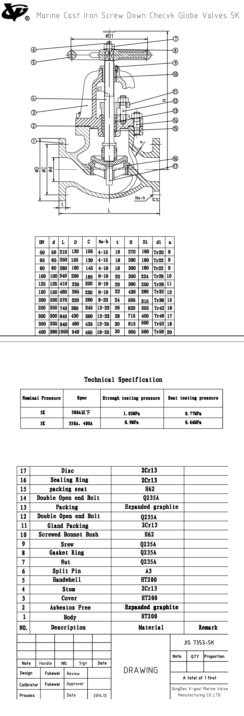 殼體測試壓力: 1.05MPa 密封測試壓力: 0.77MPa