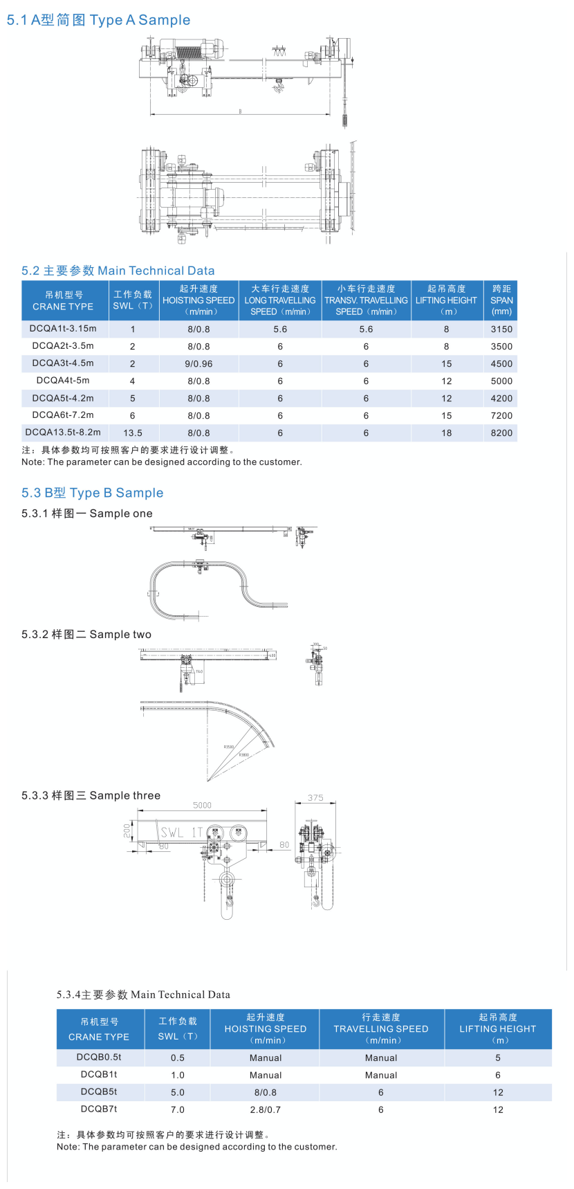 行走速度: 6m/min 起吊高度: 18m