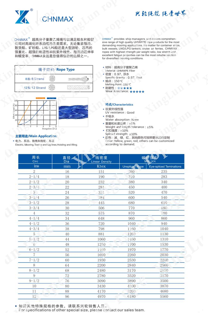 直徑: 34mm 破斷拉力: 無插編繩960KN;插編鎖扣860KN