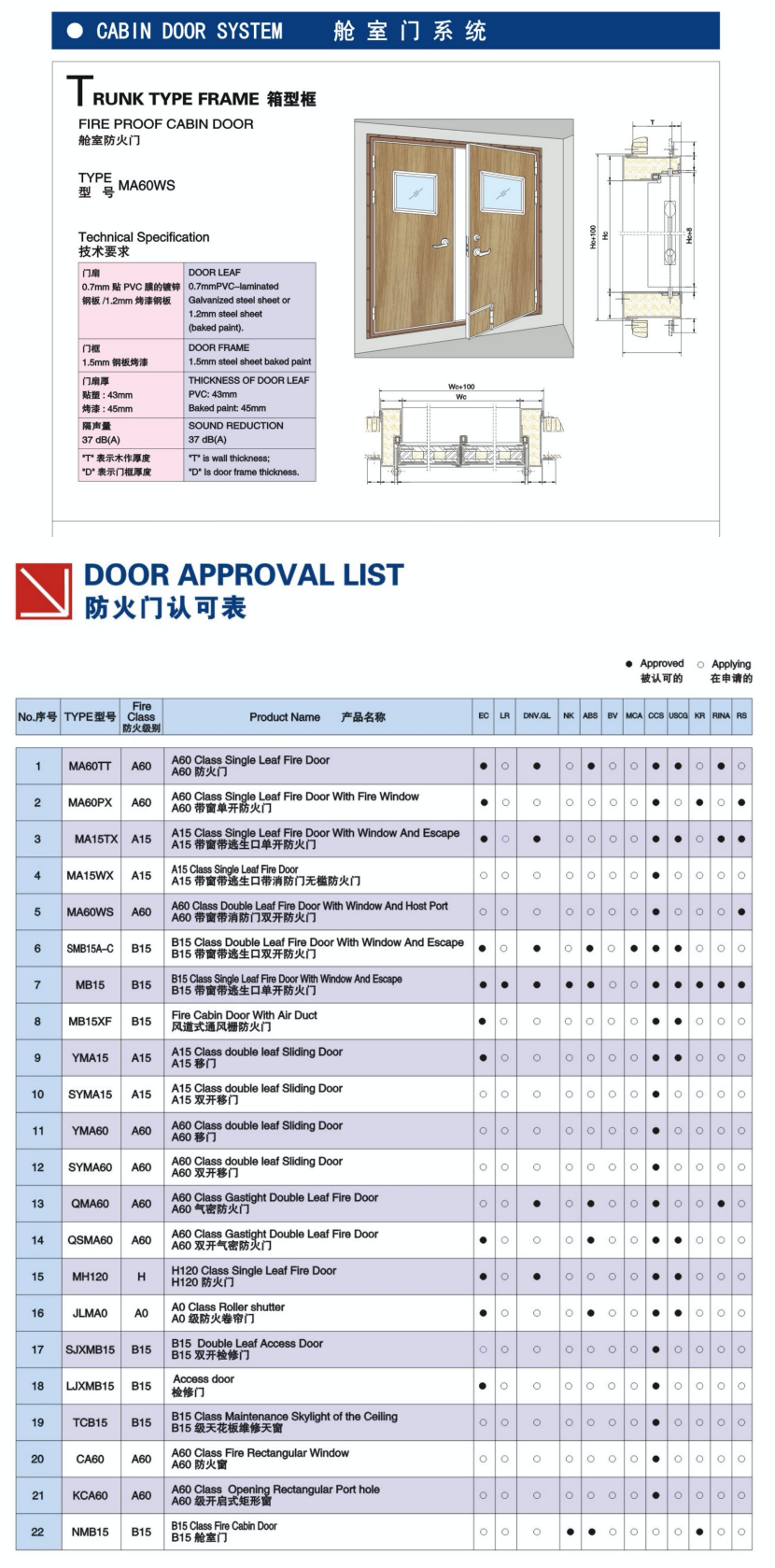 | 艙室門系統(tǒng)S型框艙室防火門 | |||
