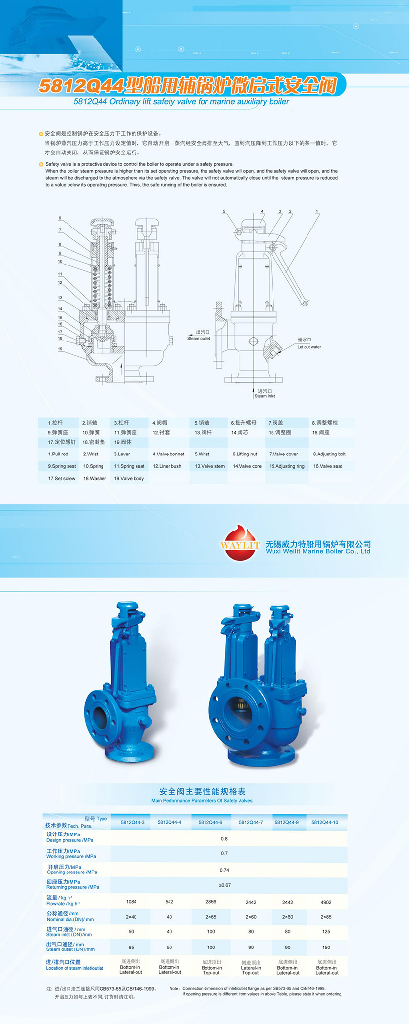 | 5812Q44型船用輔鍋爐微啟動式安全閥 | |||