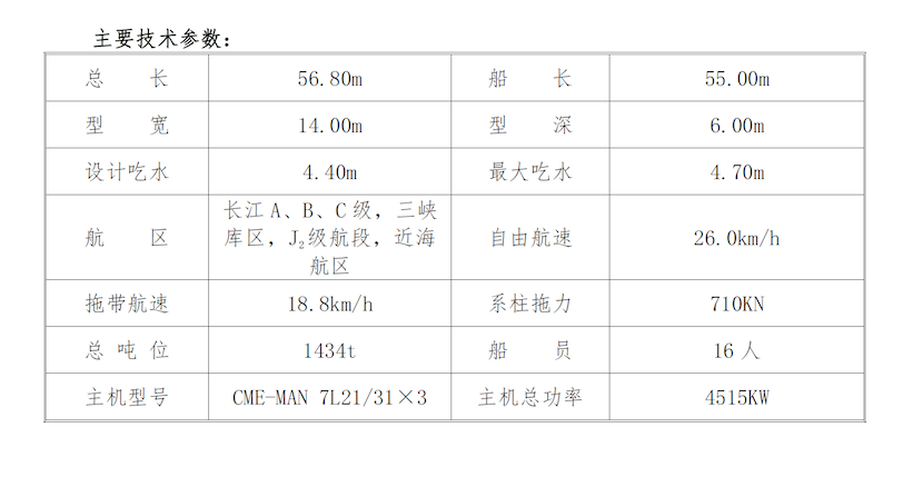 | 拖力: | 710kN | 航區: | 長江A、B、C級,三峽庫區,J?級航段,近海航區 |