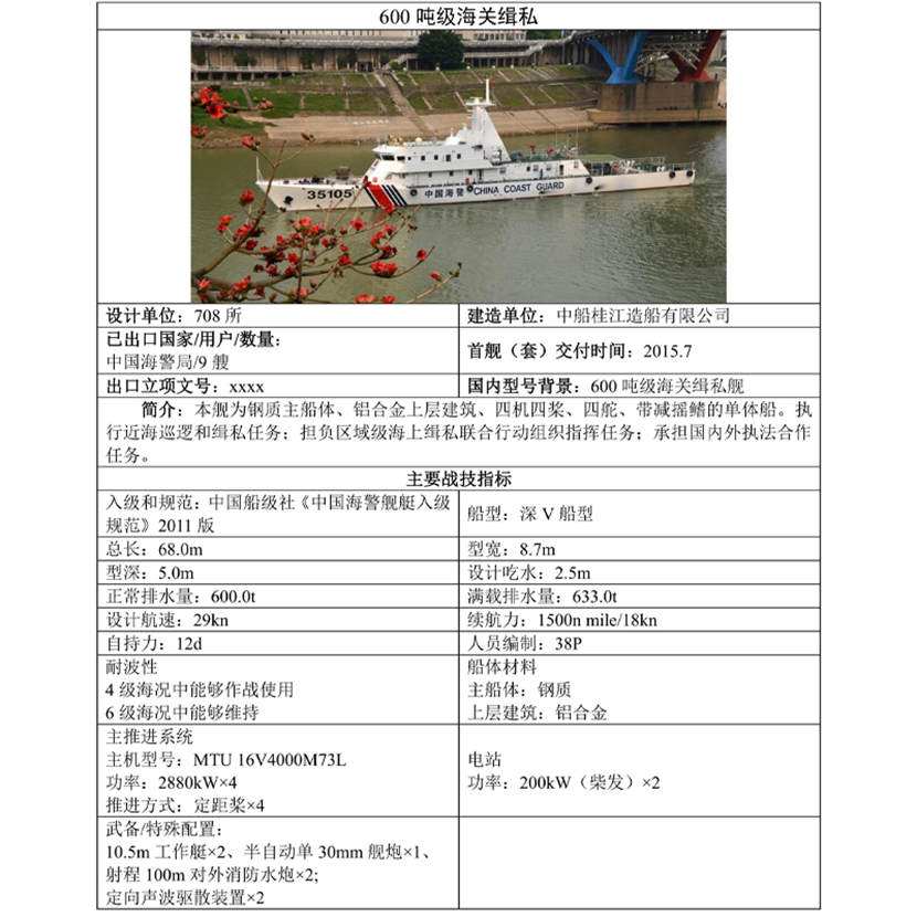 平臺 600噸級海關緝私艦