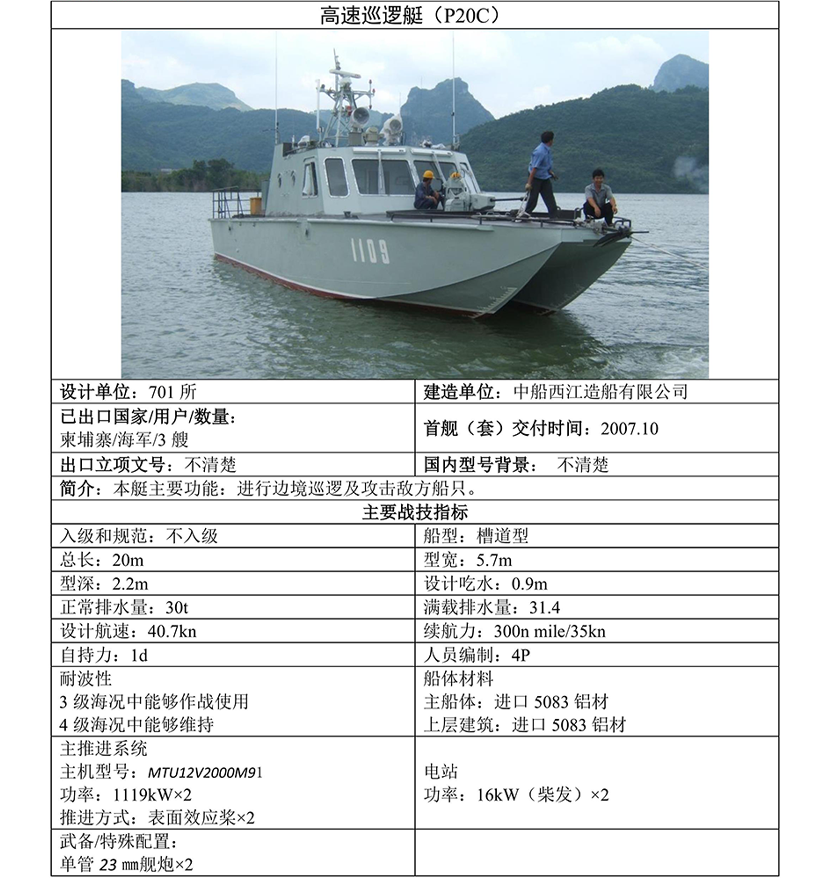 | 排水量: | 30t(正常)/31.4t(滿載) | 發動機品牌: | MTU 12V2000M91 |