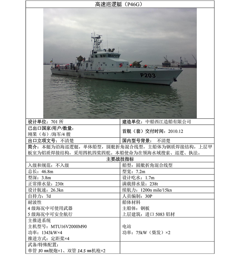 | 排水量: | 230t(正常)/238t(滿載) | 發動機品牌: | MTU16V2000M90 |