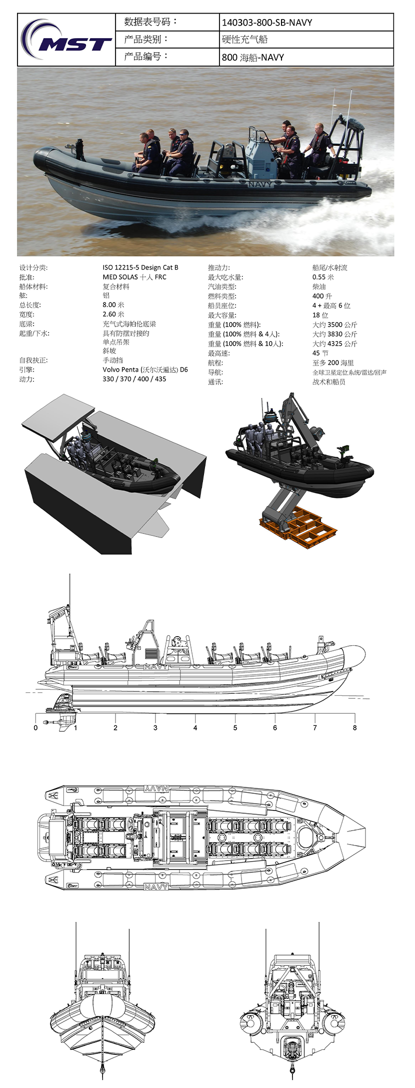 | 總重量: | 約3500kg(100%燃料);約3830kg(100%燃料&4人);約4325kg(100%燃料&10人) | 發(fā)動機(jī)品牌: | Volvo Penta(沃爾沃遍達(dá))D6 |