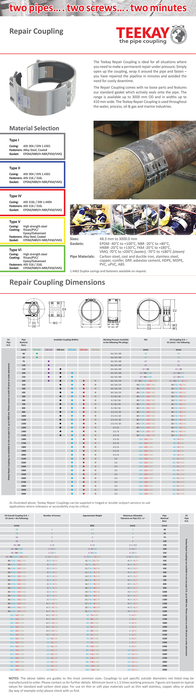 異徑最大差值: 非異徑 適用管道材質: Carbon steel, cast and ductile iron, stainless steel,copper, cunifer, GRP, asbestos cement, HDPE, MDPE,PVC, uPVC, ABS