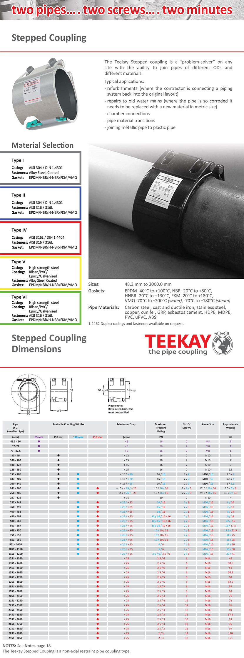 管間距離: 0~10(不帶密封圈)/0~40(帶密封圈)mm 異徑最大差值: +20~+25mm