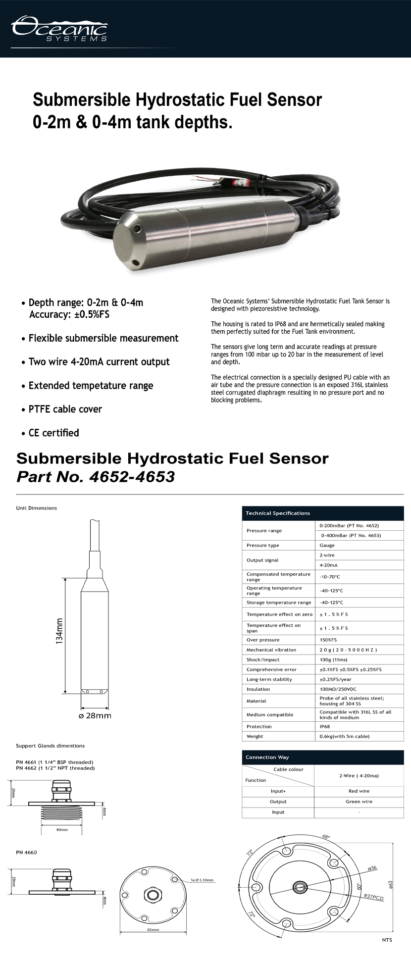 溫度補償: -10~70°C 本體材質: Probe of all stainless steel;housing of 304 SS
