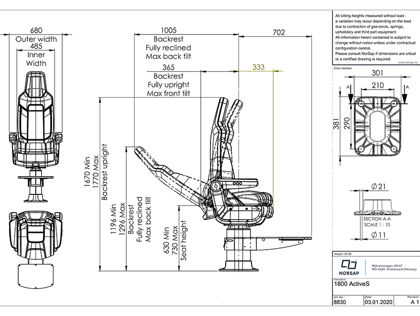 800系列輕便型高度可調船用座椅