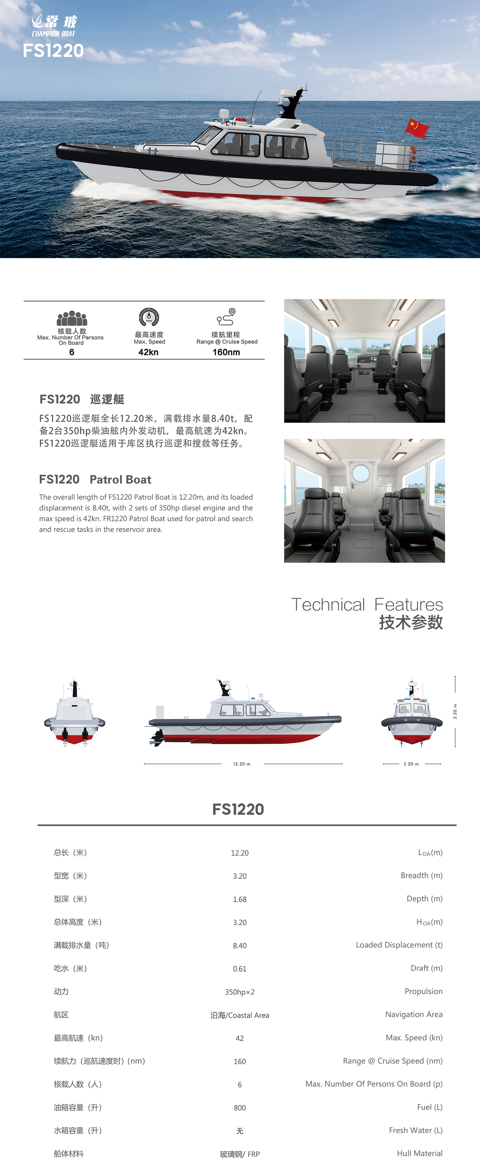 | 燃油容量: | 800L | 續(xù)航力: | 160nm |