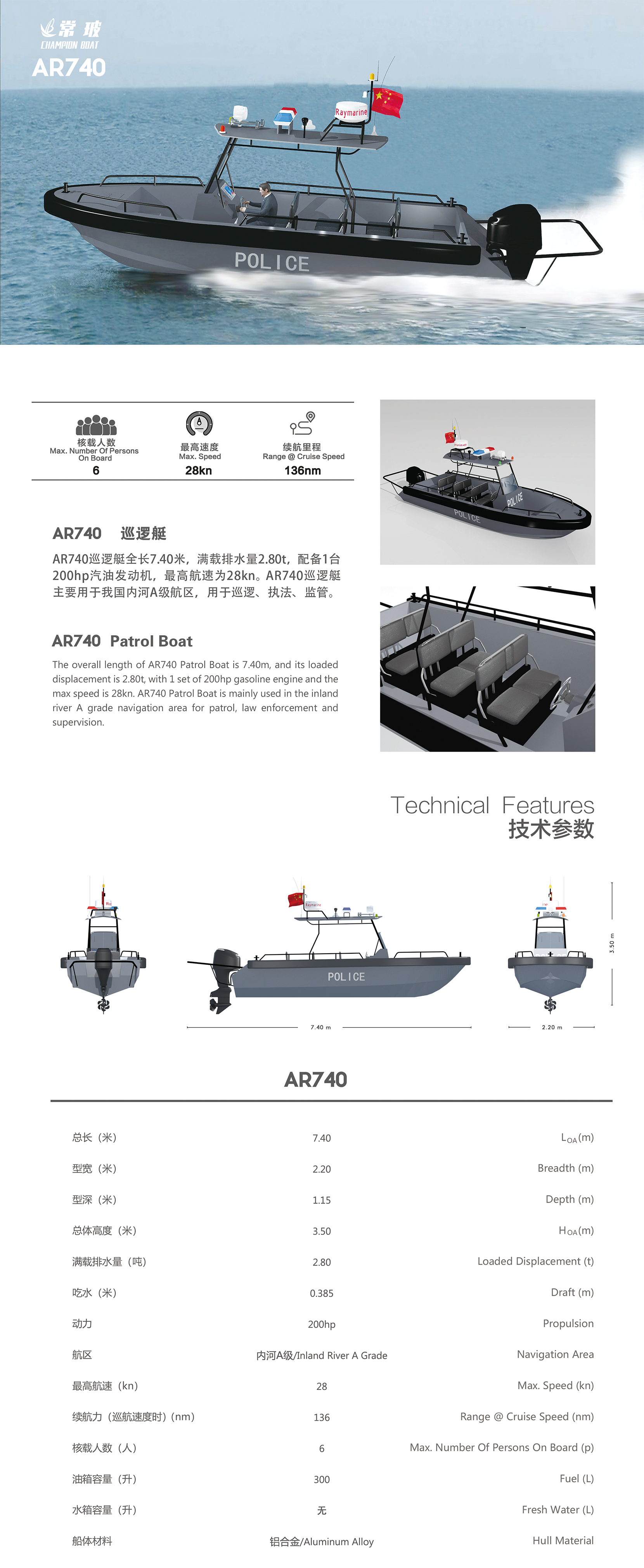 | 總長: | 7.40m | 航速: | 28kn |