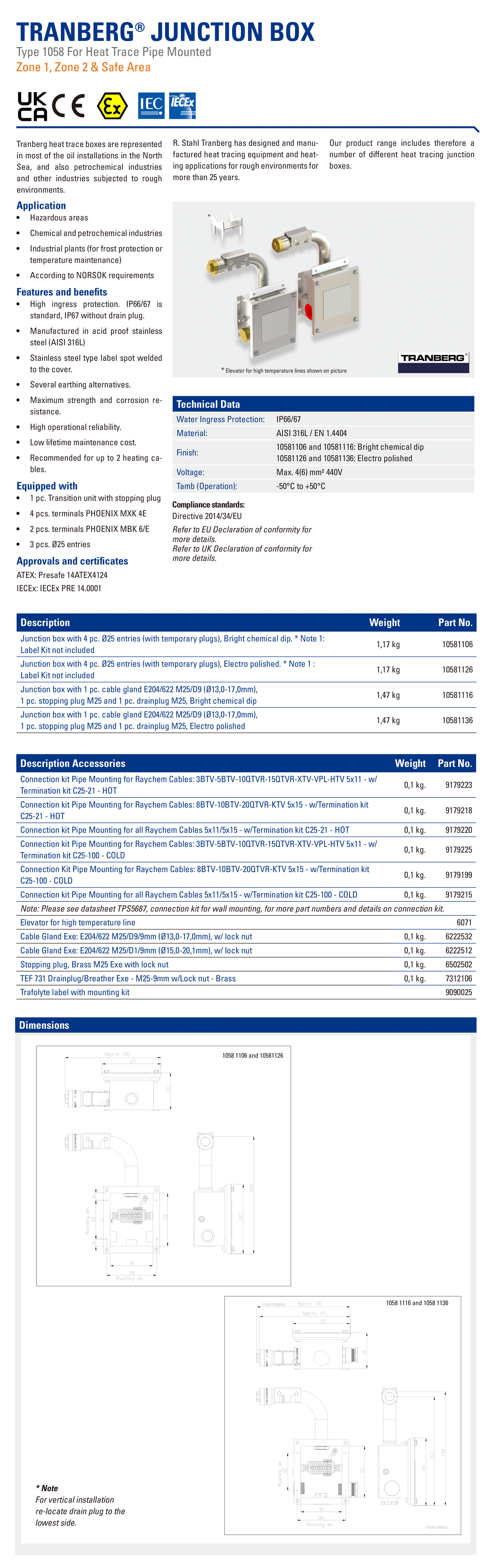 | 【防爆1&2區可用】管裝防凍伴熱電箱 | |||